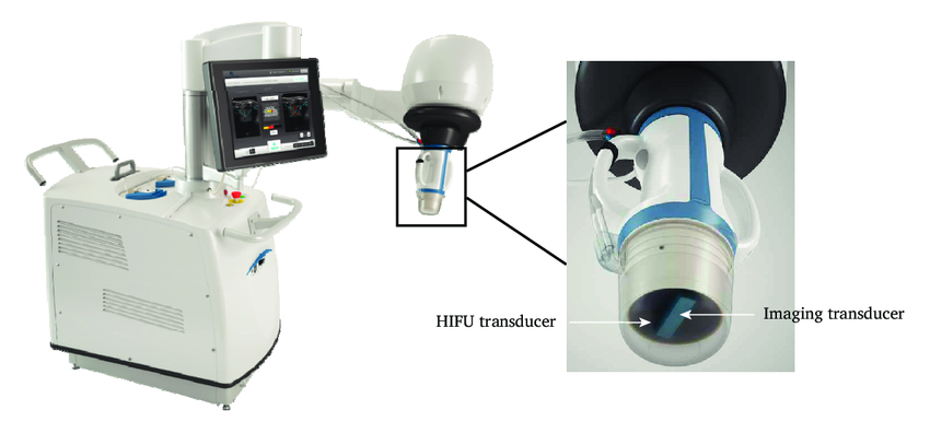 - Unitate de vizualizare şi tratament (VTU – Visualization & Treatment Unit): combină transductorul HIFU, sonda de imagistică, senzori termici şi de presiune.